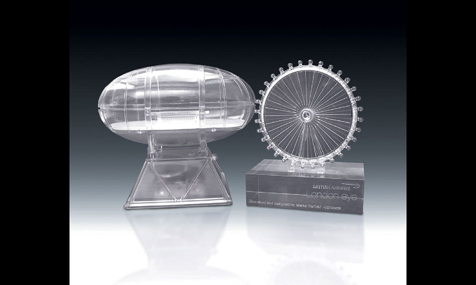 We also do packaging models, trophies and awards, corporate ID and signage, exhibition film and event props, pattern making for architectural castings, bar top furniture.